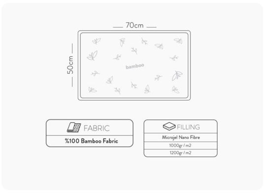 Nefes alabilen yüzeyiyle hava geçirgenliği sağlayan, doğal ve çevre dostu bambu yastıklar doğanın bizlere sunduğu mükemmelliği yatağınıza taşıyor. Doğayla iç içe keyifli ve yenilenmiş hissettirecek bir uyku sunuyor. Kumaş : %100 Bamboo Kumaş Doku: Microjel Nano Fiber – 1000-1200 gr/m2